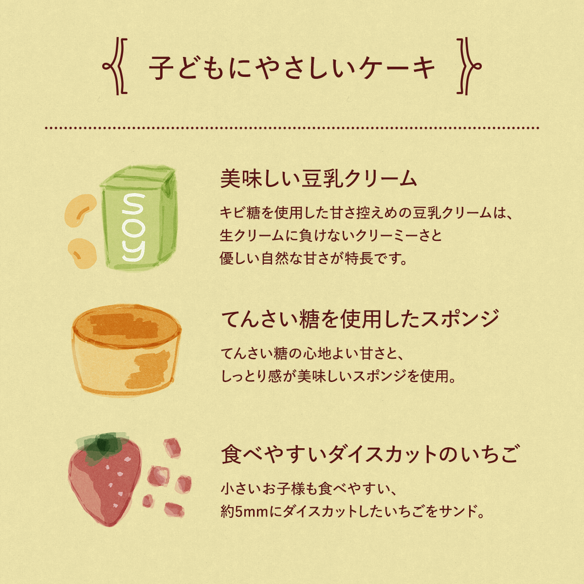 豆乳クリームのやさしいコクと、てんさい糖の穏やかな甘さ。