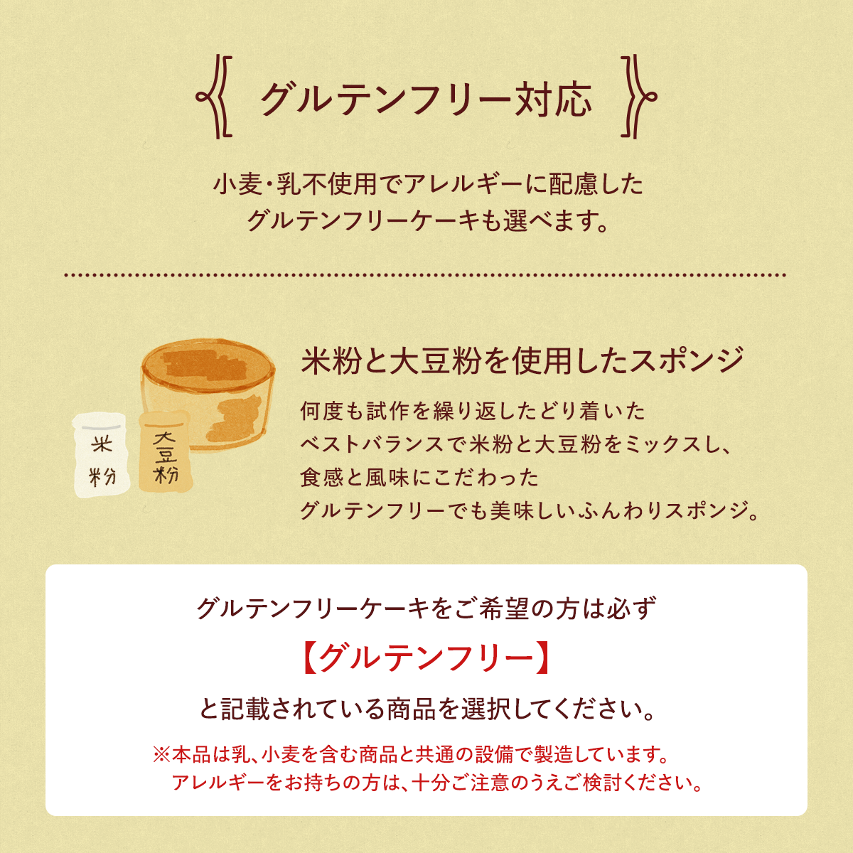 EUREKAでは、一部の商品でグルテンフリーケーキをご用意しています。